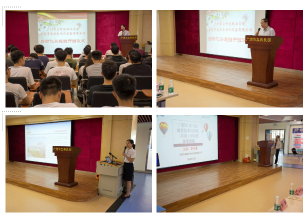 在當天培訓課程介紹環節中,益誠兩位高級工程師羅兵喜及李學,通過講解、視頻播放,詳細地為同學們建立了工業自動化行業的認知體系,并通過現場設備操作演示,讓同學們零距離感受到工業自動化的魅力,吸引了同學們的學習興趣。
